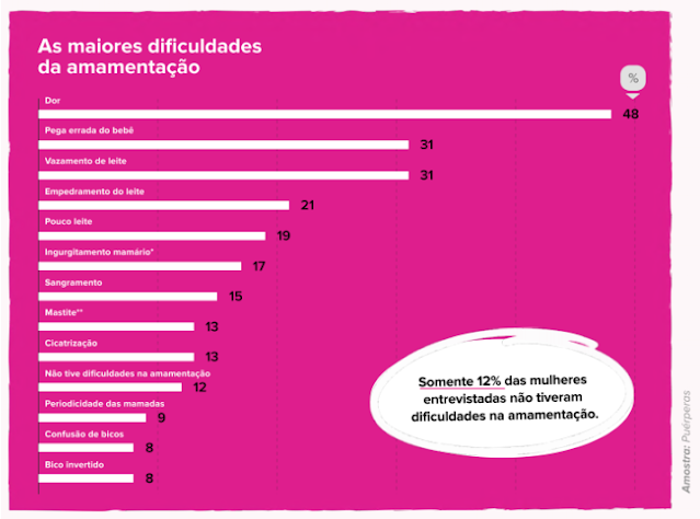 12% das puérperas não tiveram nenhuma dificuldade para amamentar, e a maior
