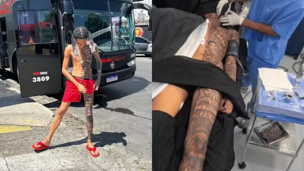 | Rapper Oruam tatuou metade do corpo de uma só vez com o auxílio de anestesia geral |